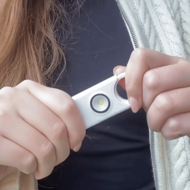 Med ett enda drag aktiveras ett extremt högt ljud och nödljus som drar till sig uppmärksamhet direkt.